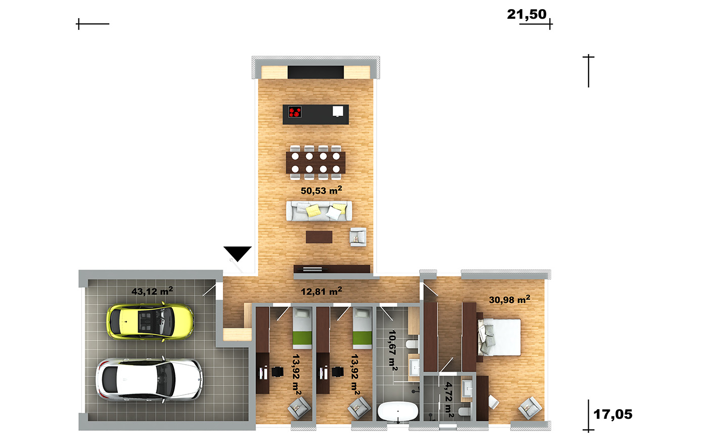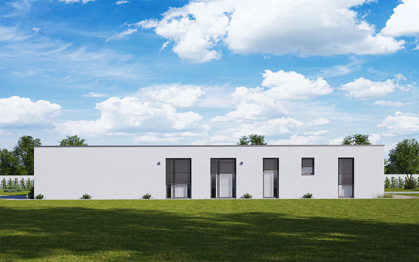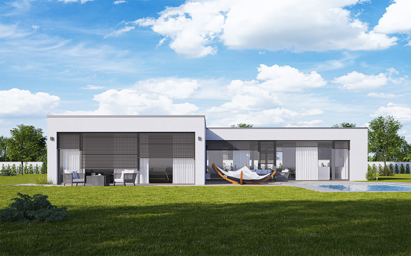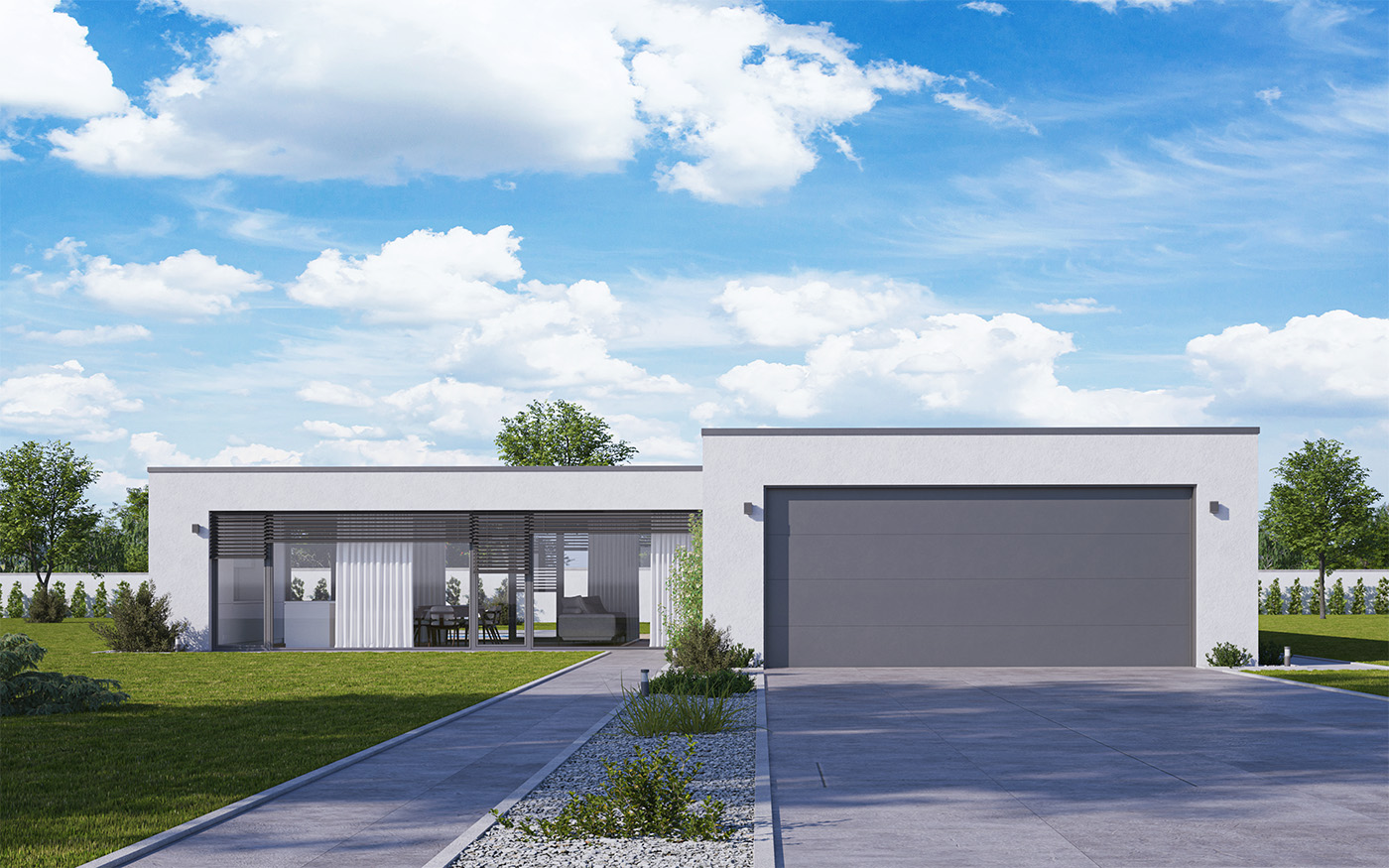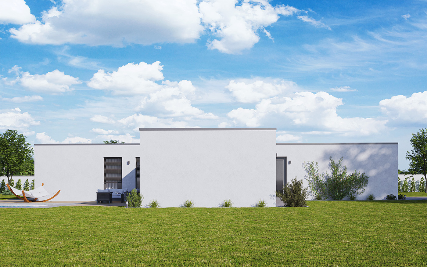 Nowy dom w dziale nowoczesnych, parterowych, prostych i bardzo wydajnych domów jednorodzinnych. Głównym założeniem projektu było połączenie luksusu ze starannym podejściem do powierzchni domu. W rezultacie powstało 180 metrów kwadratowych powierzchni użytkowej wraz z podwójnym garażem, które zaoferuje wspaniałą przestrzeń socjalną, bardzo ekskluzywną część prywatną dla rodziców, dwie łazienki, dwa pokoje dziecięce, miejsce do przechowywania i technologię domu.