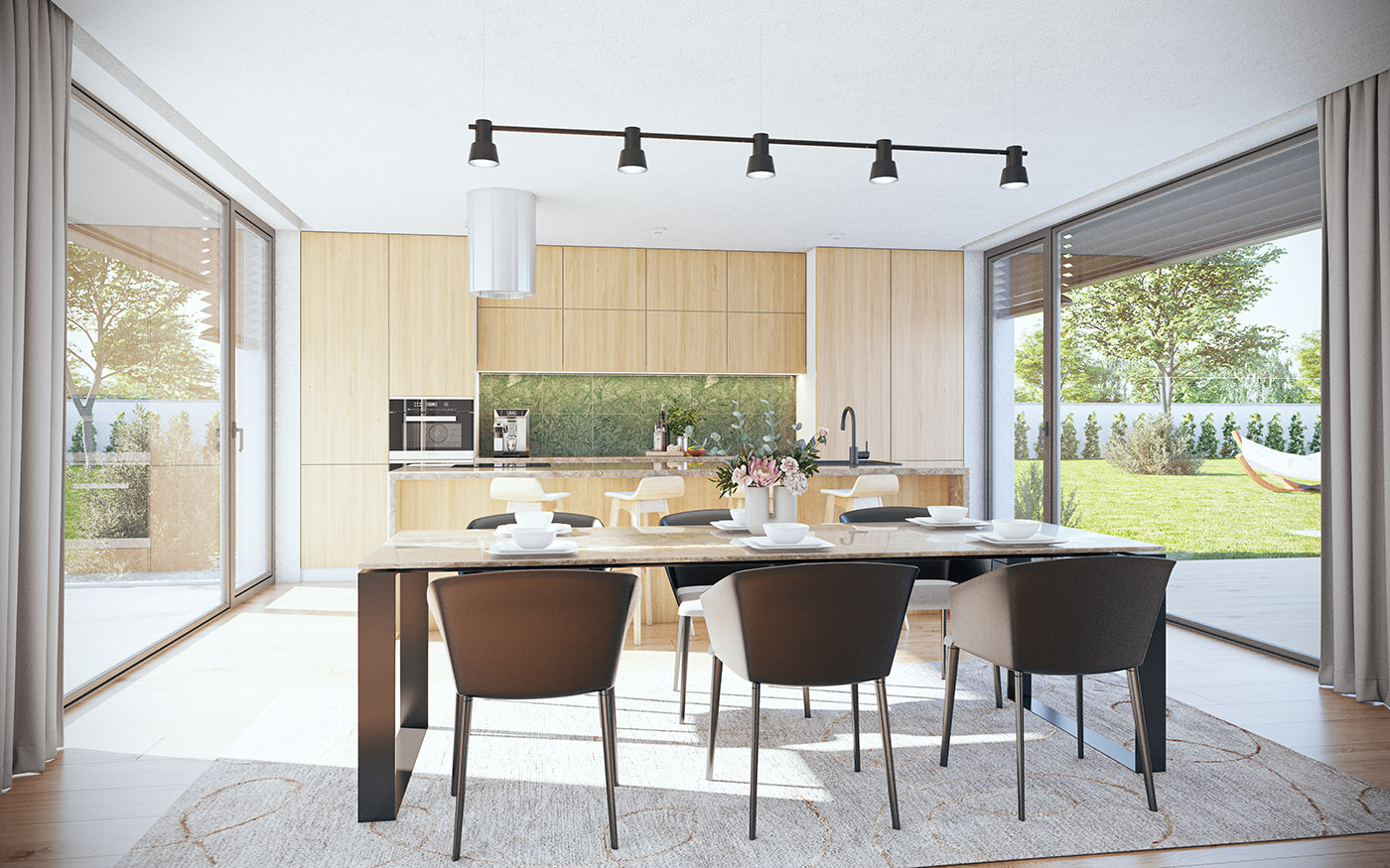 To właśnie salon połączony z jadalnią jest najważniejszym miejscem w całym domu, w którym mieszkańcy spędzają ze sobą najwięcej czasu, dlatego też temu pomieszczeniu położono maksymalny nacisk.