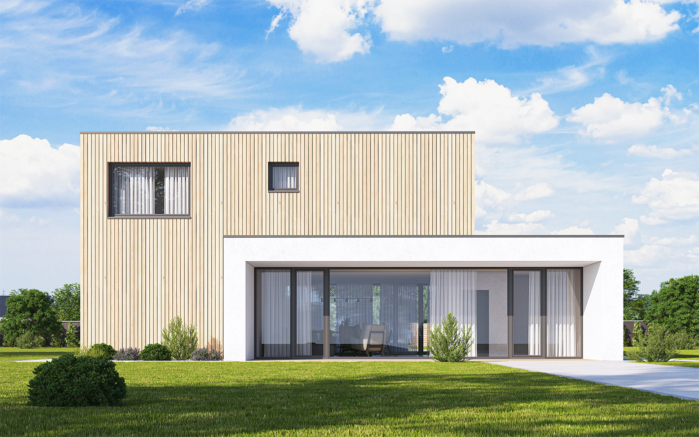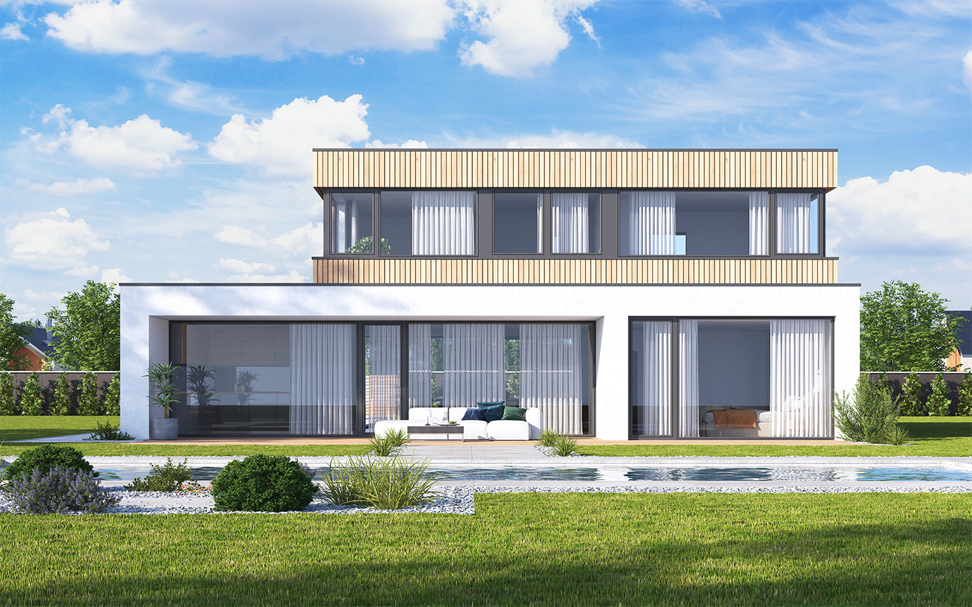 Nowoczesny dom piętrowy z ogromną ilością przeszkleń i zadaszonymi tarasami, który zachwyci wszystkich miłośników nowoczesnego życia.
