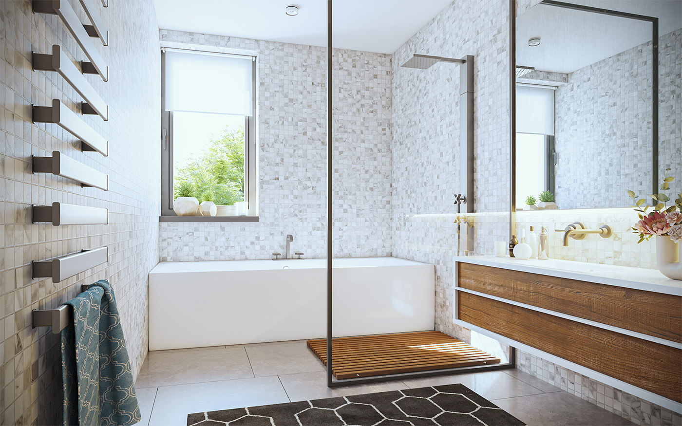 Niezbędne zaplecze w postaci toalet i pomieszczeń technicznych zlokalizowano w formie wyspy oddzielającej, pośrodku tej otwartej przestrzeni. Inne są otwarte, swobodnie przejezdne i niezwykle przyjazne. Przejście do ogrodu złagodzone jest z obu stron zadaszonym tarasem, który tłumi kontrast świetlny pomiędzy wnętrzem domu a słonecznym dniem na zewnątrz.